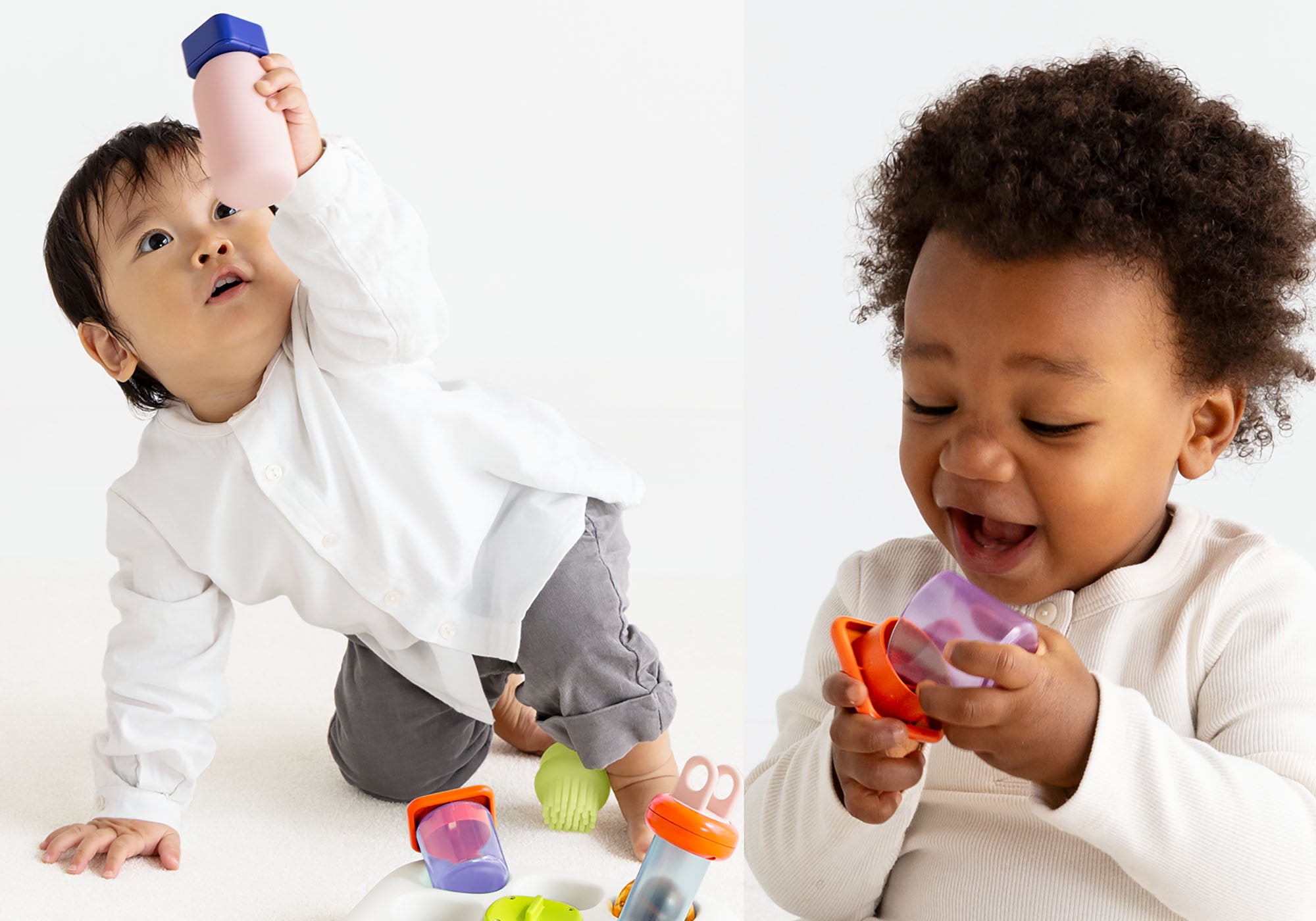 この2つがグラデーションのように混ざり合った時期の、1歳ならではの試行錯誤。そしてそれは、国境も時代も越えて共通する1歳の根源的な欲求。わたしたちはここに、1歳の好奇心のおもしろさがつまっていると感じています。