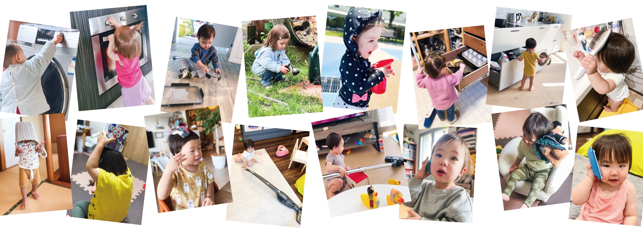 世界各地の1歳を調査する中で、1歳たちが共通して、家の中にある日用品へ関心を爆発させ、それらの使い方の探究を日々繰り返している様子がはっきりと見えてきました。