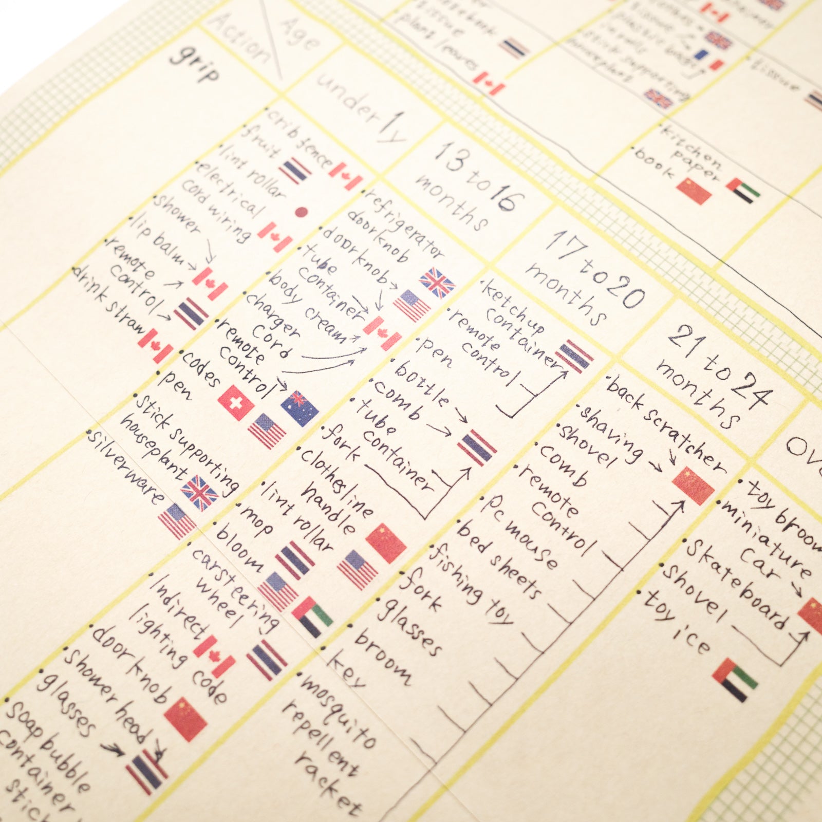 世界各地の1歳がいじっている日用品を、1歳の行動ごとに集めました。